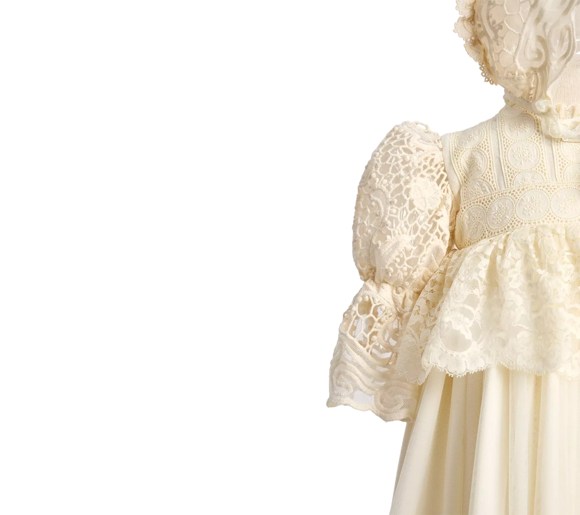 Fabricado en tul bordado con blonda de alençon y bajo grabado.