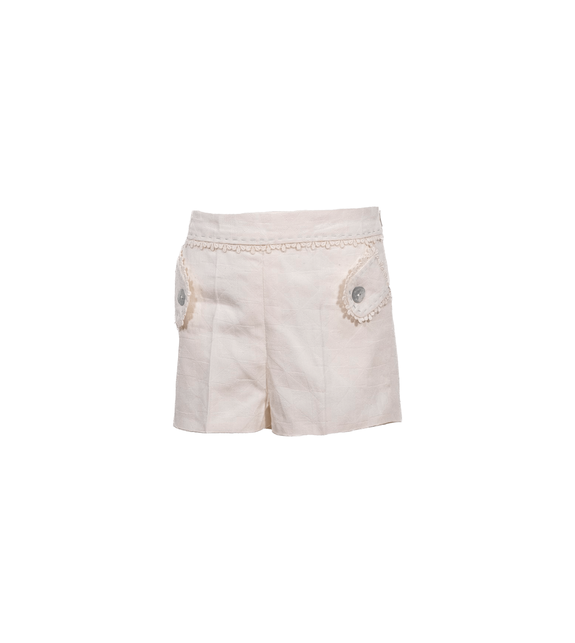 Pantalón en tejidos de jacquard y lino 100% con cremallera lateral, bolsillos delanteros y goma ajustable en la cintura.